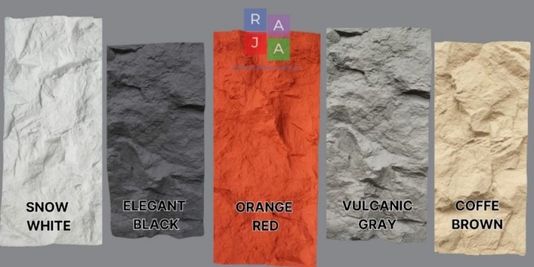 PU Stone adalah singkatan dari Polyurethane Stone, merupakan bahan sintetis yang dirancang untuk meniru tekstur dan penampilan batu alam. Material ini terbuat dari campuran poliuretan yang diperkuat dengan serat mineral, sehingga memberikan tampilan yang autentik serupa dengan batu alam namun dengan berat yang lebih ringan, lebih mudah dipasang, dan lebih tahan lama. PU Stone memiliki spesifikasi Panjang 120 cm, lebar 60 cm dan tebal 10 cm dan memiliki banyak kelebihan seperti anti air, anti rayap, dan anti api. PU Stone memiliki beragam varian warna seperti coffe brown, elegant black, vulcanic gray, orange red, dan snow white