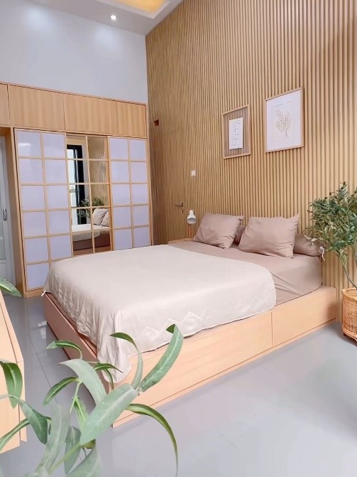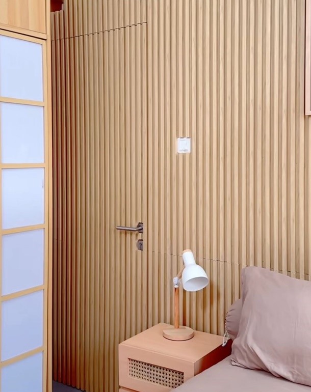 Kalian bisa mengikuti inspirasi interior dari Raja Plafon menggunakan WPC Series GW apabila bosan dengan tampilan pintu yang biasa saja. Kamar yang berukuran 4×3 m menghabiskan 32 pcs wallpanel. Tampilan serat kayu pada WPC GW series ini sangat terlihat alami dengan beragam warna. Sebelum memasang WPC pada ruangan kalian juga bisa berkonsultasi pada kami melalui sosial media kami ya