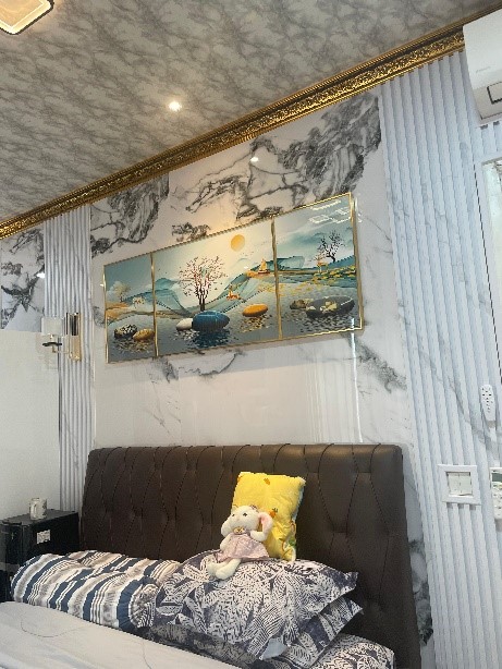 Di Showroom Raja Plafon Indonesia juga menggunakan Wallboard Lignum dengan motif yang sama loh King & Queen, begini tampilannya. Kalian juga bisa mengkreasikan dengan memberikan hiasan lain seperti lukisan atau foto, seperti ini: