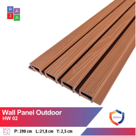 Wallpanel Outdoor adalah sebuah produk berupa panel dinding eksterior yang memiliki panjang 290 cm, lebar 20 cm, dan tebal 3 cm, wallpanel outdoor ini umumnya memiliki warna wood, kayu teak, dan sebagainya, dan sesuai namanya wallpannel outdoor ini berfungsi untuk ruangan eksterior atau ruangan luar seperti halaman teras, garasi, dll.